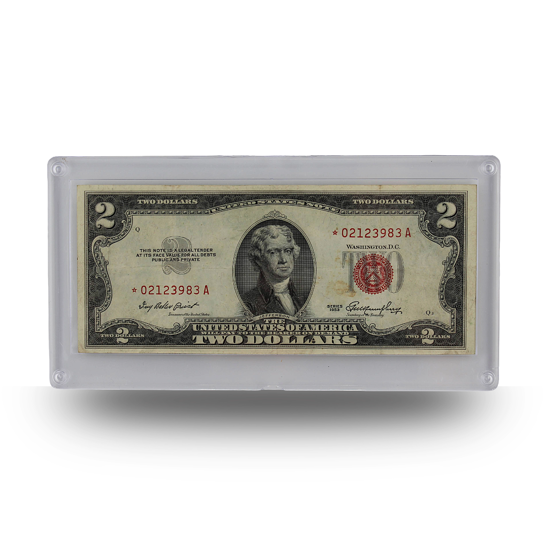 MetalStacks only sells professionally authenticated currency and coins. Collectors value star notes for their rarity, as they are replacement notes issued to substitute for bills damaged or misprinted during production. When paired with the distinctive red seal of the Series 1953 U.S. Note, these star notes become a standout piece in any collection.